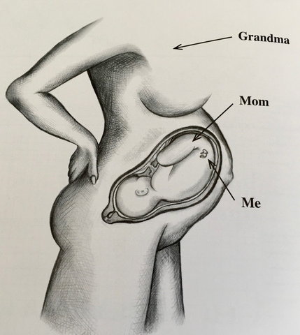 بدأت حياتك على الأرض داخل جدتك. لا صدمة هنا، مجرد علم أحياء مُبسط: تُطور الجنين الأنثى كل البويضات التي ستحصل عليها عندما تكون لا تزال داخل جسد والدتها. كـجنين، امتلكت والدتك كلّ البويضات التي ستحتاجها داخل مبيضيها، وواحدة من هذه البويضات ستتطور لتصبح أنت. خلال الجلسة، تعجبنا من هذا الرباط الأنثوي الساحر والمقدّس العابر للأجيال؛ لقد عاشت الأخوات والعمّات معاً في انتفاخ بطن الجدات. عشنّ. حياة.